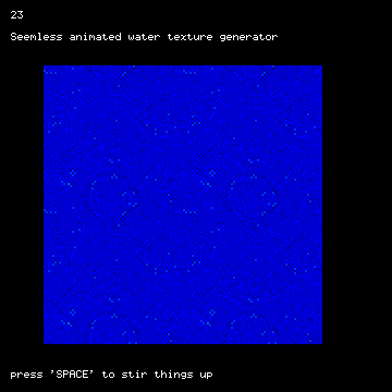 This code could easily be extended to "bake" a water animation texture which could then be put into a mode8 fpg file.